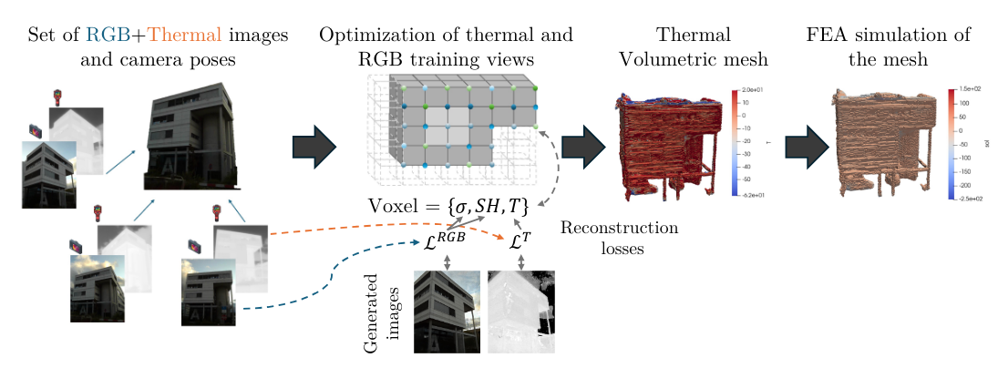 First method to generate volumetric meshes compatible with FEA from a sparse set of RGB+Thermal images